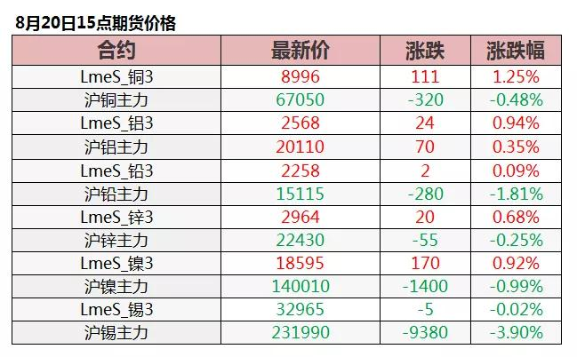 ? ? ??截止日間收盤各主力合約表現如下:國際銅漲 0.46%,滬銅漲 0.61%,滬鋁漲 0.8%,滬鉛跌 2.26%,滬鋅漲 0.09%,滬鎳跌 0.86%,滬錫跌 3.64%。銅方面,今日倉單報價 105-140 美元/噸,均價較前一交易日上調 17.5 美元/噸;提單報價 90-120 美元/噸,均價較前一交易日上調 20 美元/噸,QP9 月,報價參考 9 月到港貨源。LME 0-3 貼水 0 美元/噸,進口盈利在 100 元/噸附近。
